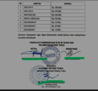Dugaan Pungli HUT RI ke-80 di Batang Tuaka: Panitia Patok Iuran Berdasarkan Jabatan
