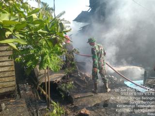 Babinsa dan Anggota Kodim 0314/Inhil Turun Tangan Padamkan Kebakaran di Sei Beringin