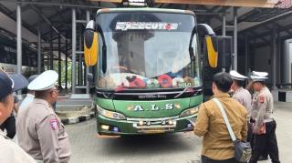 Ditlantas Polda Riau Gelar Ramp Check Bus AKAP di Terminal Payung Sekaki Pekanbaru