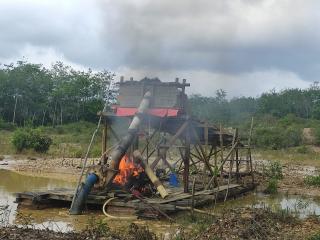 Personil Sat Reskrim Polres Kuansing dan Polsek Kuantan Hilir Musnahkan Dua Unit Rakit PETI Di Desa Kasang Limau Sundai Kecamatan Kuantan Hilir Sebera
