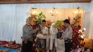 Kapolsek Kampar Beri Kado Pernikahan Bibit Mangga, Pengantin Terharu!