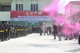 1000 Pesonel Dikerahkan Korem 031/WB TNI Dan Polri dalam Simulasi Penindakan Aksi Anarkis Operasi Perbantuan pengamanan Pilkada Serentak.