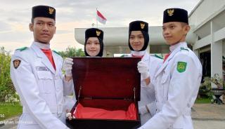 Pj Bupati Inhil Herman Menerima Duplikat Bendera Merah Putih