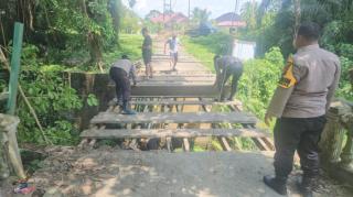 Personil Polda Riau dan Polres Kampar Semangat Selesaikan 3 Jembatan di Kuok, Progres Tertinggi Capai 70%