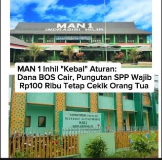 MAN 1 Inhil Kebal Aturan: Dana BOS Cair, Pungutan SPP Wajib Rp100 Ribu Tetap Cekik Orang Tua