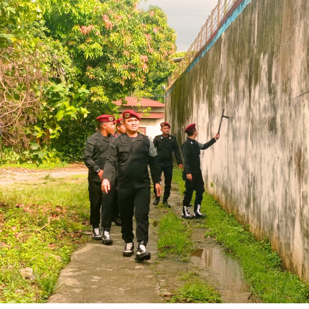 Bebasbicara.id - PASIR PENGARAIAN, Antisipasi terjadinya gangguan keamanan dan ketertiban di Lembaga Pemasyarakatan (Lapas) kelas II B Pasir Pengaraian lakukan kontrol keliling (troling) tembok luar Lapas Kamis (26/10/2023).