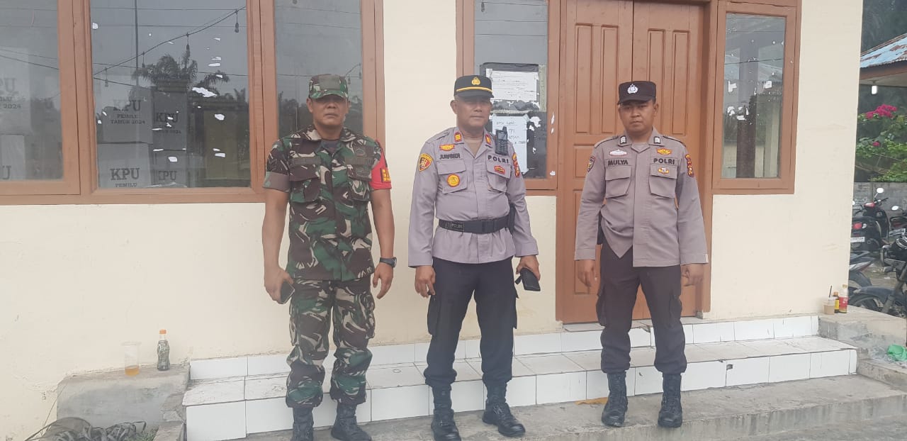 Kapolsek Tapung Hilir AKP Jurfredi bersama Bhabinkamtibmas Desa Kota Garo Brigadir Mulyadi dan Serma Dedi Isriadi melakukan pengecekan Logistik kotak surat suara setelah Pencoblosan di PPS desa Kota Garo Kecamatan Tapung Hilir.