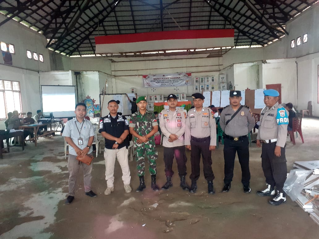 Polsek Reteh bersama TNI Bersinergi menjaga sidang Rapat Pleno terbuka di Tingkat PPK Kec Reteh