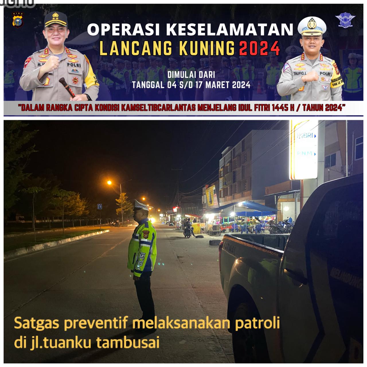 Patroli Blue Light Satgas Preventif Polres Kuansing Pada Operasi Keselamatan Lancang Kuning 2024