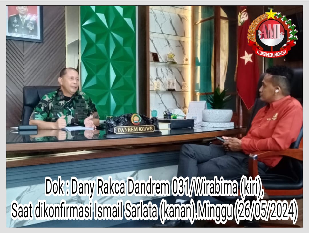 Usai melakukan Investigasi dan memperoleh informasi dari masyarakat Dusun IV Desa Sontang Kab.Rohul, team Aliansi Media Indonesia meminta konfirmasi langsung kepada Dany Rakca,S.S.AP.,M.Han selaku Dandrem 031/Wirabima