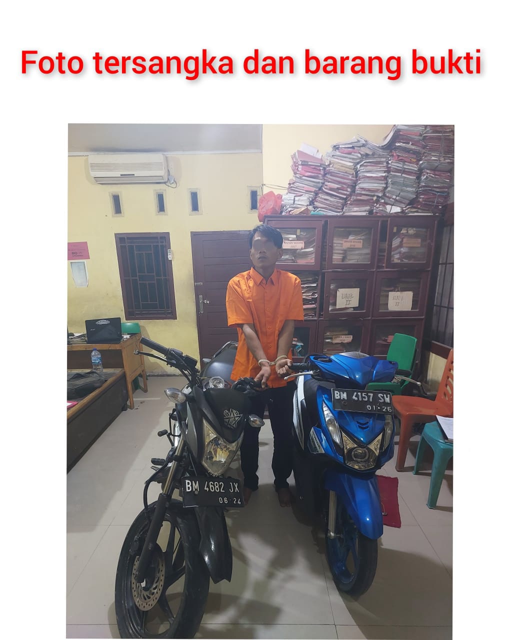 TAMBANG- EN (26) warga Desa Kualu, Kecamatan Tambang, Kabupaten Kampar tak berkutik saat ditangkap Polsek Tambang, pasalnya ia terbukti melakukan pencurian sepeda motor milik mahasiswa di Desa Tarai Bangun, Kecamatan Tambang, Selasa (16/7/2024).