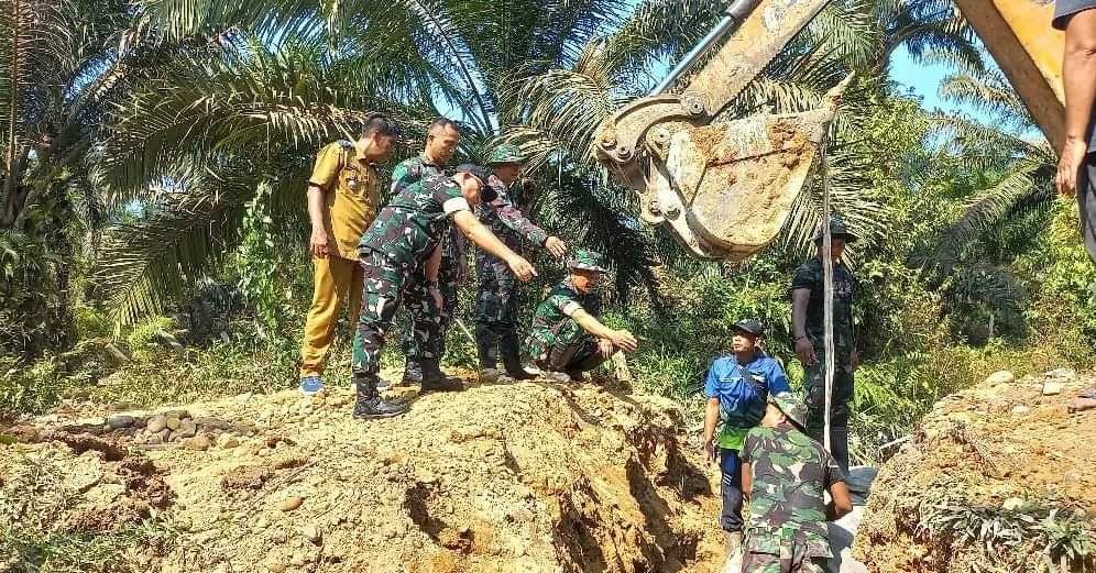 Danrem 031/WB berserta rombongan,Pasi bin wanwil 031/Wb Mayor Inf Marwan parapat,Dantim Intel Rem 031/Wb Mayor Inf Zulkarnaen, Serda Alfiandra Nasution tiba dilokasi sasaran Tmmd guna mengecek kesiapan perlengkapan dan proses kinerja satgas Tmmd ke 121 tahun 2024 kodim 0313/Kpr.