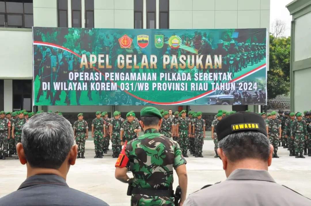 Sebanyak 550 personel gabungan melaksanakan Apel yang digelar dipimpin langsung oleh Danrem 031/Wira Bima Brigjen TNI Dany Rakca, S.A.P., M.Han bertujuan untuk memastikan kesiapan personel dan materiil dalam menjaga keamanan selama proses demokrasi berlangsung di Provinsi Riau.