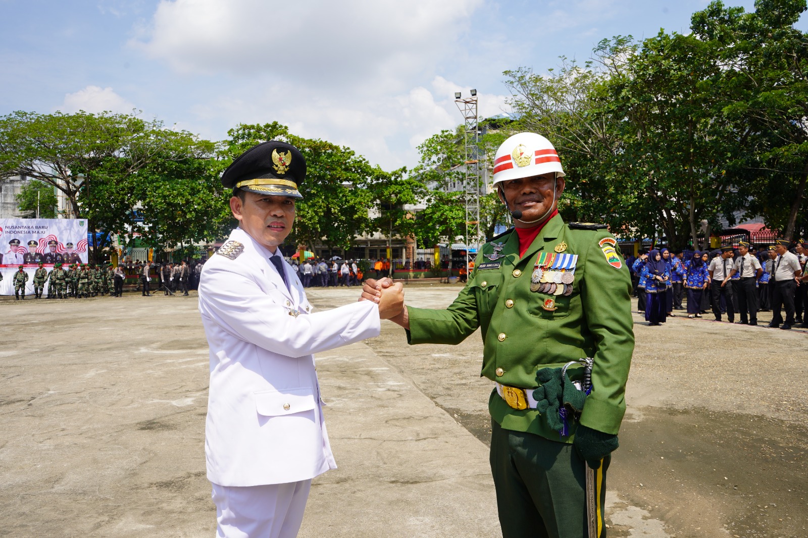 "Di HUT ke-79 ini pula kita merasakan kenikmatan yang luar biasa, negara yang aman dan kondusif. Suasana aman dan kondusif ini harus kita pertahankan dengan bergandengan tangan satu sama lain nya untuk Indonesia dan Kabupaten Inhil yang lebih maju."