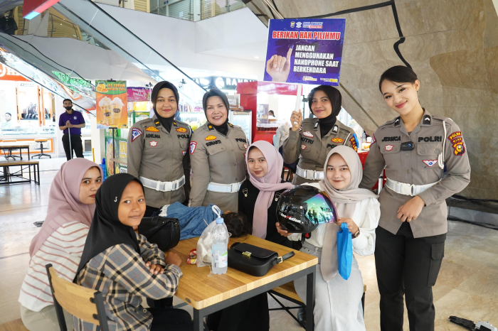 Ayooo lawan berita palsu " pungkas Briptu Jessika disela sela membagikan Helm kepada pengunjung mall.