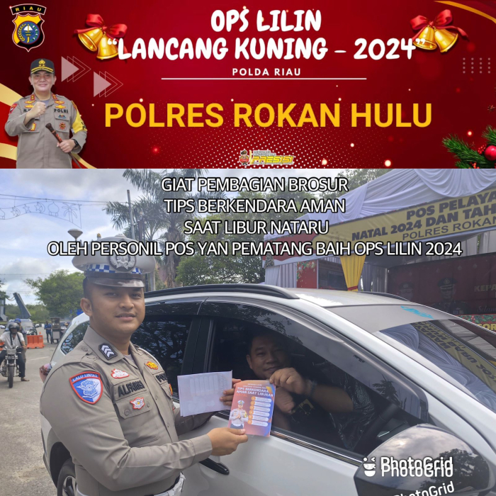 ROKAN HULU – Operasi Lancang Kuning 2024, Dalam rangka mendukung pelaksanaan Operasi Lilin LK 2024, Satuan Lalu Lintas Polres Rokan Hulu melaksanakan kegiatan pembagian brosur kepada masyarakat di wilayah hukum Polres Rokan Hulu. Kegiatan ini berlangsung di Pos Yan Pematang Baih, Jalan Tuanku Tambusai, Pasir Pangaraian, pada Kamis (26/12/2024) sekitar pukul 10.00 WIB.