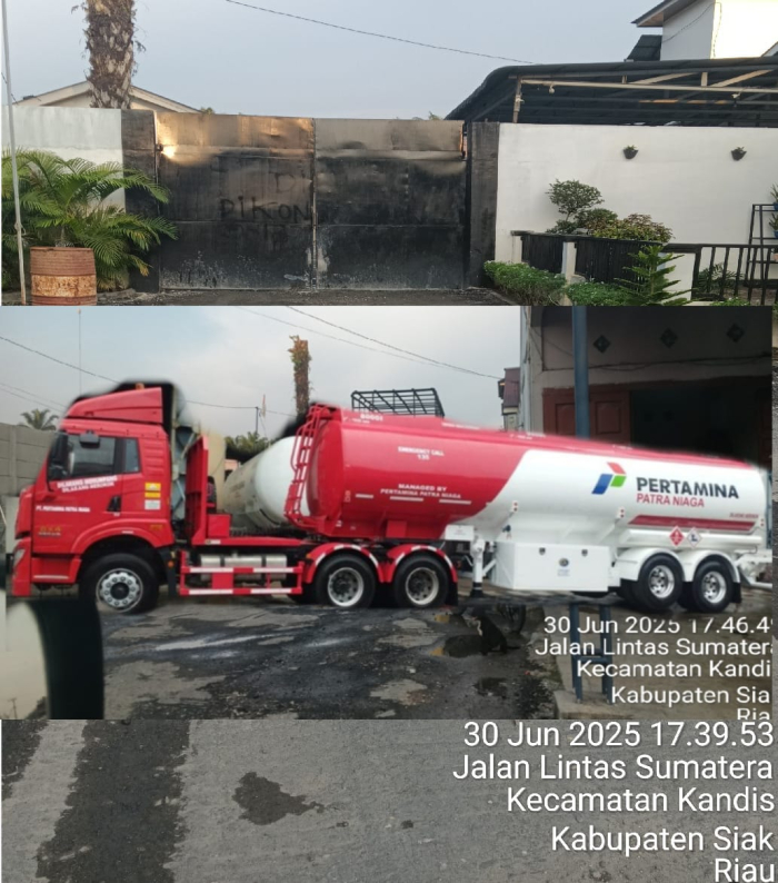 Kandis Siak Riau - Tepatnya di jln lintas Sumatera Kec. Kandis Kab. Siak Provinsi Riau, Dimana ketika awak media sedang melintas menemukan mobil truk tangki BBM panjang keluar dari gunung penampung BBM milik Bombom, 30 /6/2025.