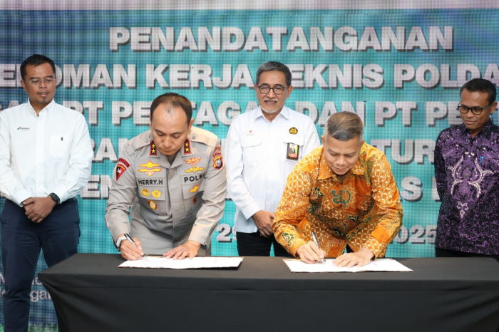 BATAM - Polda Riau bersama SKK Migas, PT Pertagas, dan Pertamina Patra Niaga menandatangani Pedoman Kerja Teknis yang dirangkaikan dengan silaturahmi bersama pengelola Objek Vital Nasional (Obvitnas) Provinsi Riau, Jumat (29/8/2025) di Aula Hotel Radisson, Batam.