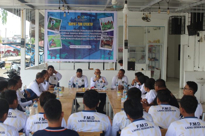 Bengkalis – Lembaga Pemasyarakatan (Lapas) Kelas IIA Bengkalis terus menunjukkan komitmennya dalam meningkatkan kualitas pembinaan bagi Warga Binaan Pemasyarakatan (WBP). Hal ini diwujudkan melalui pelaksanaan rapat Tim Efektif Proyek Perubahan Pembinaan Kemandirian WBP melalui Program Ketahanan Pangan dan UMKM, yang digelar di Lapas Bengkalis, Sabtu (20/09/2025).
