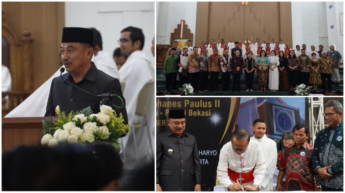 KOTABEKASI - Wakil Wali Kota Bekasi Abdul Harris Bobihoe hadiri acara pemberkatan Gereja Katolik Santo Yohanes Paulus II, Rawalumbu, Kota Bekasi.